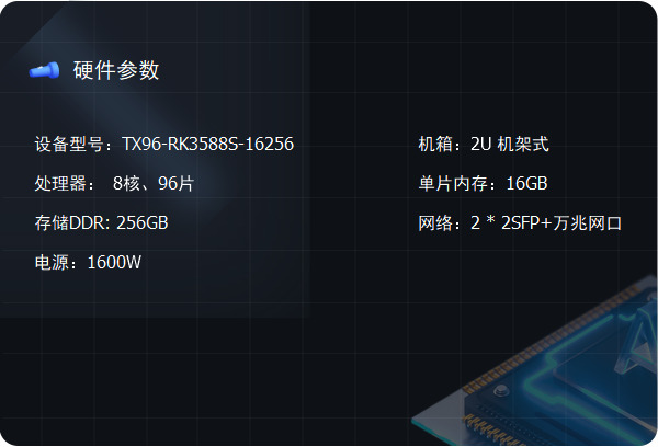 ? ? ? ? ? ?標(biāo)準(zhǔn)2U機(jī)架列陣服務(wù)器,最高可配置96片高性能模塊,極致算力,抽屜式插拔設(shè)計(jì),支持安卓android、unbuntu、centos等多種操作系統(tǒng)。